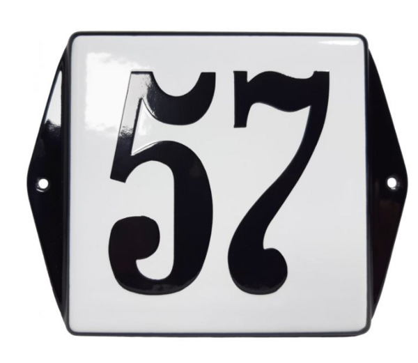 Ben je op zoek naar een stijlvolle en tijdloze manier om je huisnummer weer te geven? Emaille huisnummer model oor in Wit/Zwart is precies wat je nodig hebt! Met een afmeting van 12 x 12 cm past dit bord perfect op iedere gevel. De oortjes zijn 1,5 cm aan beide kanten.