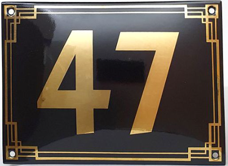 Emaille huisnummer in de kleur zwart-goud IS ALLEEN verkrijgbaar van 1 t/m 50. Gebold model met klassieke uitstraling. Duurzaam, weerbestendig en onderhoudsvrij. Snelle levering, perfect voor een stijlvolle en tijdloze gevel.