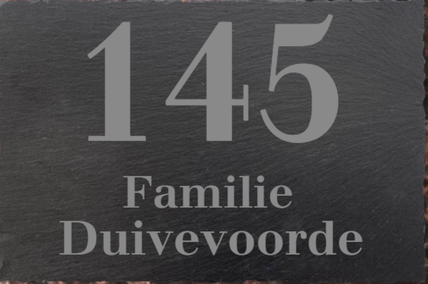 De tekst/ huisnummer wordt in het leisteen naamplaat gelaserd.