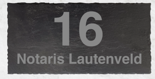 De tekst/ huisnummer worden in grijsachtige tint in het leisteen naambord gelaserd.