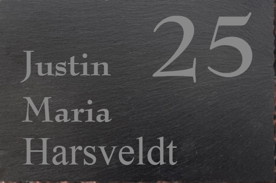 De tekst/ huisnummer wordt in het leisteen naamplaat gelaserd.