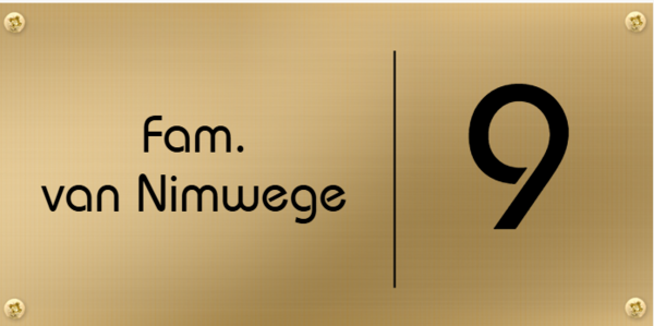 Messing naambordjes worden met veel zorg gemaakt. Uw tekst wordt zwart gelaserd gegraveerd in uw gekozen lettertype. Tevens krijgt uw messing naamplaatje een beschermde laklaag voor de levensduur van uw naambordje.