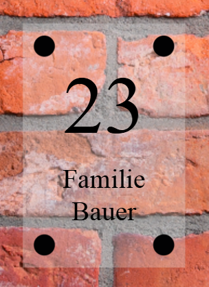 Transparant naambordje.  Oppervlakte hoogglanzend, kleurecht en weerbestendig.