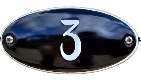 Elegant ovaal huisnummerbord van emaille met sierlijke rand. Formaat 10 x 5 cm. Beschikbaar in meerdere kleurcombinaties.  Ovale husnummers worden handgemaakt, weerbestendig en tijdloos – een verfijnde toevoeging aan uw voordeur.
