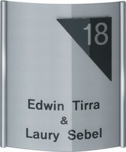 Gravoglas naamplaat met aluminium frame afmeting: 20 x 15 cm.