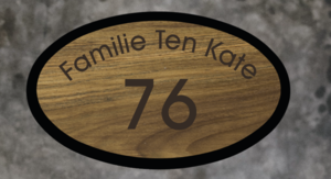 Teakhout is een houtsoort wat vaak gebruikt wordt als scheepsplanken.. Onze teakhouten deurborden zijn verkrijgbaar in diverse vormen en afmetingen. Uw tekst wordt door middel van lasermachine erin gebrand. Bij dit model naambord wordt uw tekst gebogen geplaatst met uw cijfer eronder.