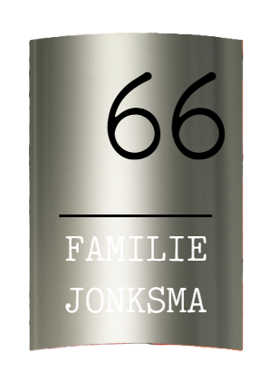 Geef je gevel een eigentijdse en elegante look met dit gebogen RVS naambord met vinylbedrukking. Dit naambordje, vervaardigd uit hoogwaardig roestvaststaal (RVS) en professioneel uitgerust met duurzame vinylletters, zal een echte eyecatcher zijn bij jouw voordeur. De gebogen vorm draagt bij aan een extra elegante uitstraling, waardoor je huis meteen een verzorgde indruk wekt.