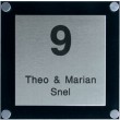 Zwart massief persplex voorzien van een RVS gelaserde voorplaat.